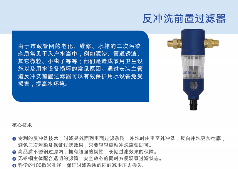 b、專利反沖洗技術,雜質無殘留。