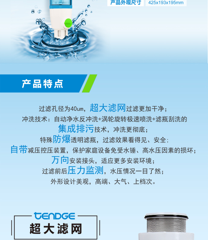 適用壓力:0.15-1MPa            過濾精度:40μm